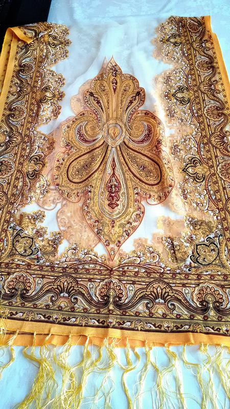Новый шарф с восточным узором и кистями, размер в м 1,55* 0,51