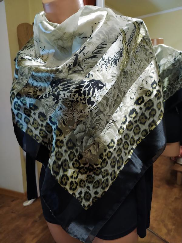 Красивый платок в стиле сафари. Состав: полиэстер с атласной полосой. Страна изготовления: ЮАР. Размер 102*102см.