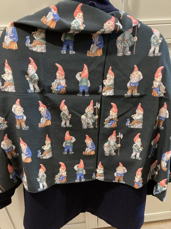 Шовковий шарф, шалик, з кумедними гномиками, є невеличка плямка, при носінні не видно. Чудова вінтажна річ. Стан шва-роуль на фото. Розмір 62*126см