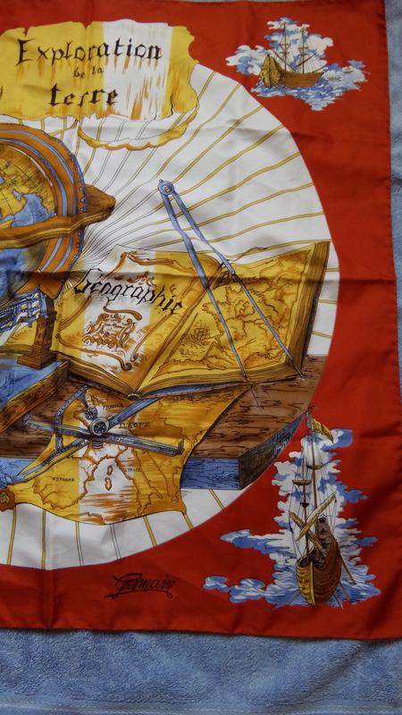 Очень интересный дизайн платка. Состояние отличное, без дефектов Основной фон ближе к кирпичному. Бирка срезана Размер 77*77 Состав: Полиэстер