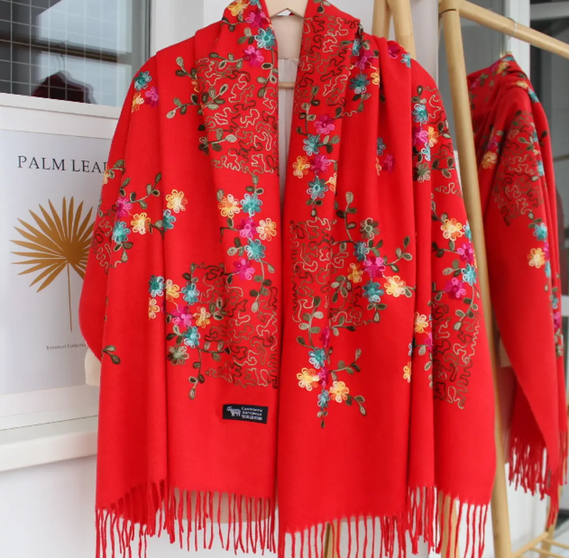 Кашеміровий 134005 шарф з вишивкою у червоному кольорі