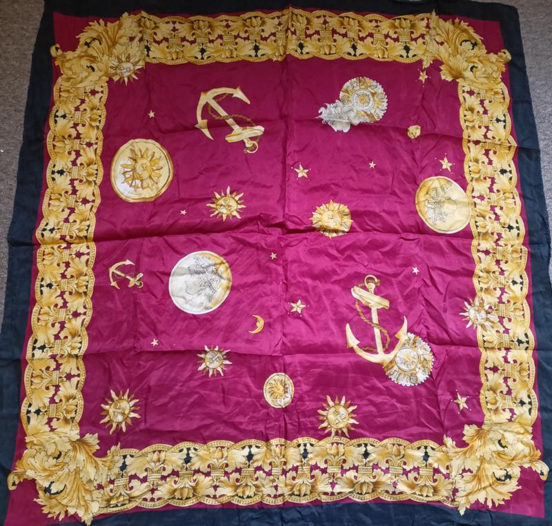 Потрясающий Шелковый платок под Джанни Версаче (возможно оригинал) надписи нет В роскошном цвете из черного, красно- бордового и золотого, изготовлен из декадентского шелка. Любой сезон, любые случаи и любые поколения ... Также может стать отличной идеей подарка. Отличное состояние ,мелкие незначительный повреждения , визуально при носке не видно Шелк 100% размер 88х85см.