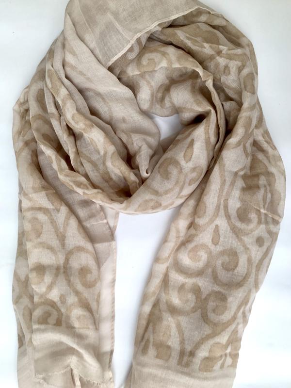 Нежный,изысканный дизайн этого шарфа особенно особенно привлекает внимание окружающих. Ширина 90 см.,длина 186 см. Состав 100% вискоза