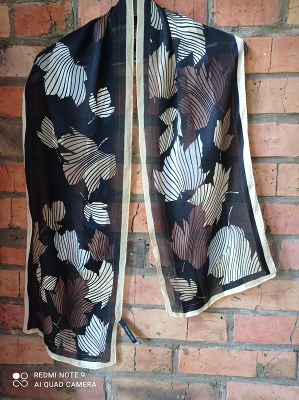 Красивый шелковый подписной шарфик размер 27 х 146 см. Чередование прозрачных и матовых полосок.