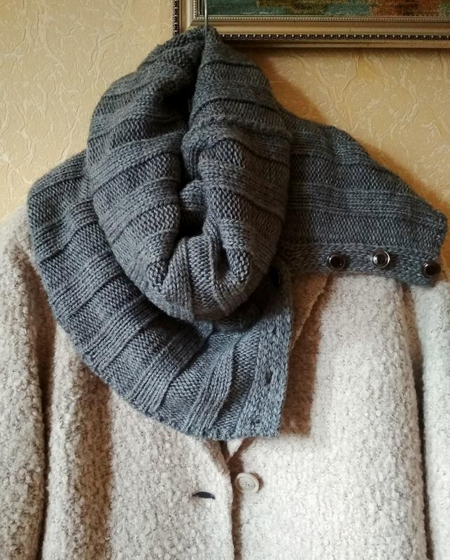 Стильный , тёплый шарф - снуд . Цвет насыщенный серый . Очень мягкий и приятный к телу материал ( акрил + шерсть ) . Вещь в идеале , одевала 1 раз . Из нюансов - срезала бирку .
