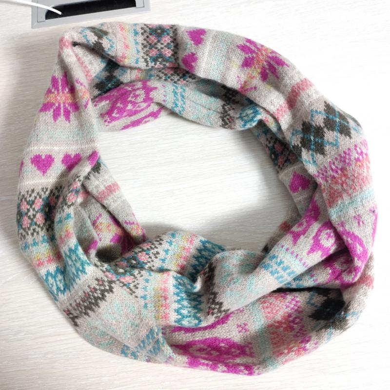 Теплий шарф снуд в орнамент в узор з совами і сніжинками