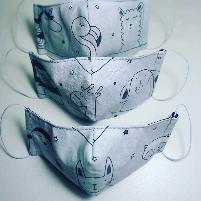 Кілька примірників у наявності Продам багаторазові дитячі та дорослі маски. Тканини натуральні х/б ; двошарова маска має бічні виточки, що дає відмінну посадку на обличчі ! Маска не стирчить з боків і виглядає чудово!