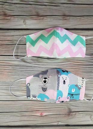 Маска защитная, в 2 слоя ткани. Материал : хлопок. Много ярких и стильных расцветок. В наличии и для детей и взрослых