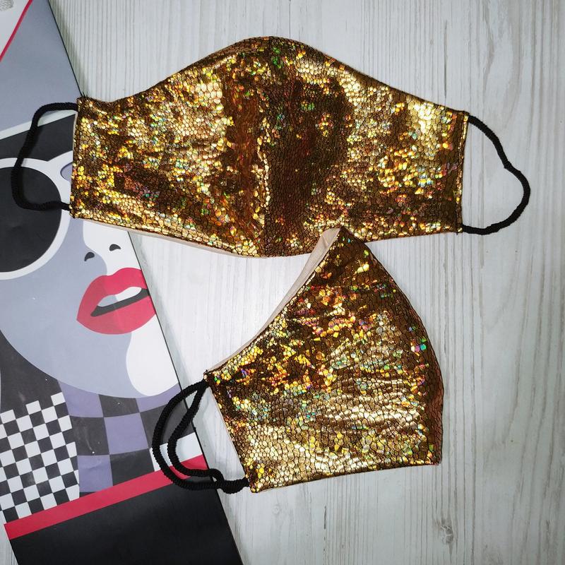 Двошарові багаторазові масочки- голограмма. Красиво переливаються і відблискують. Верхній шар трикотаж, внутрішній - натуральний хлопок приємний до тіла.