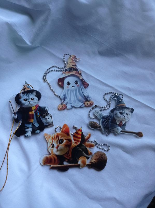 подвеска акриловая 2д идеально подходит для зеркала в машину, в рюкзак и домашнего декора * привид 8см кот со совой 8 см рыжий на метте 9см*6 см кот в шляпе на метле 8 см *6 см цена 100 грн 1 шт