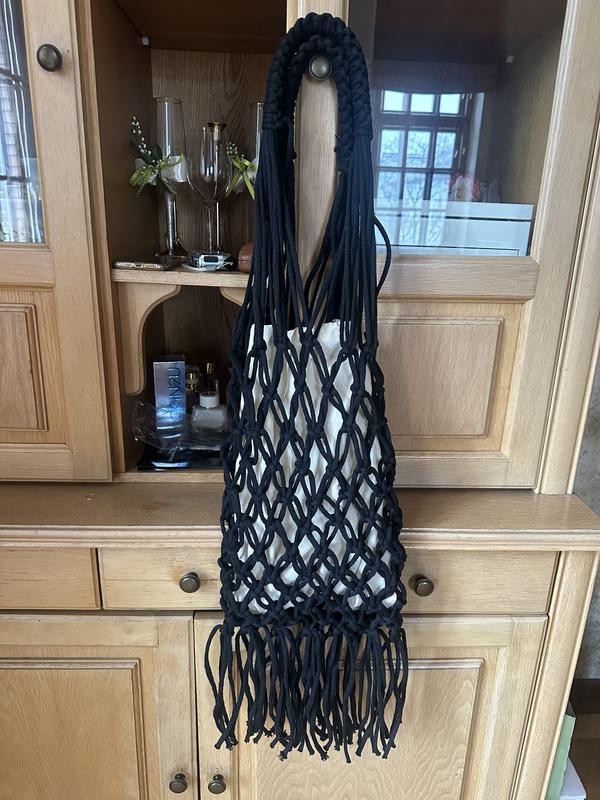 Сумка-авоська в техніці макраме, чорного кольору. В середині лляний мішечок. Продаю по собівартості, оскільки я ще початківець.