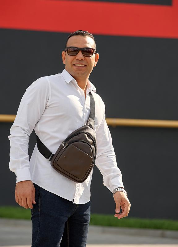 Чоловіча шкіряна сумка слінг через плече sambag brooklyn коричнева