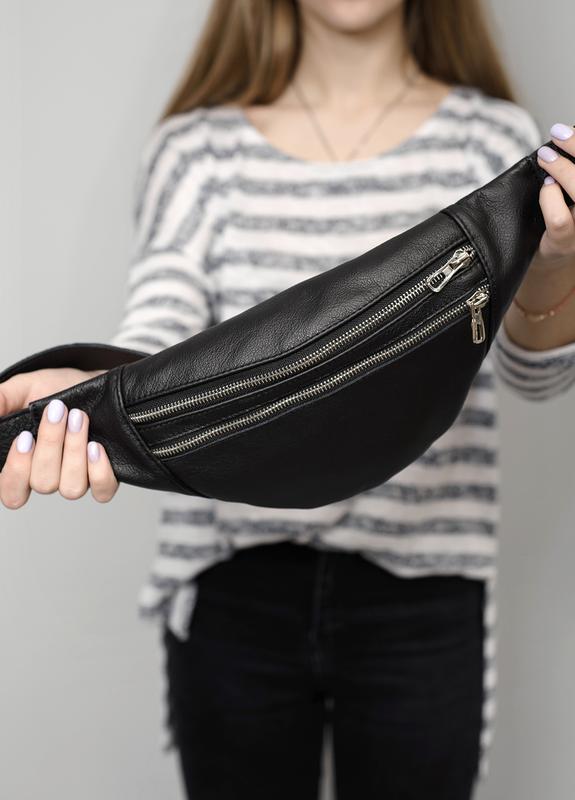 Жіноча сумка на пояс з натуральної шкіри бананка sambag soho чорна