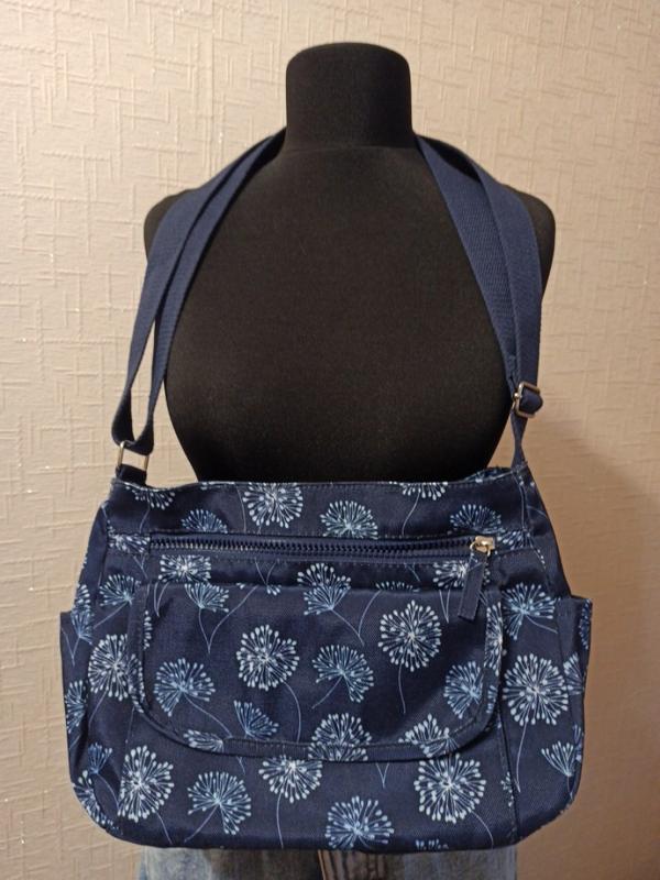 чудова сумочка ! в состоянии новой вещи выполнена из прочной плащовки, приятная на ощупь длина ручки регулируются имеет целых 8 отделов унисекс Размеры: Высота 20 см Ширина 30 Толщина 10