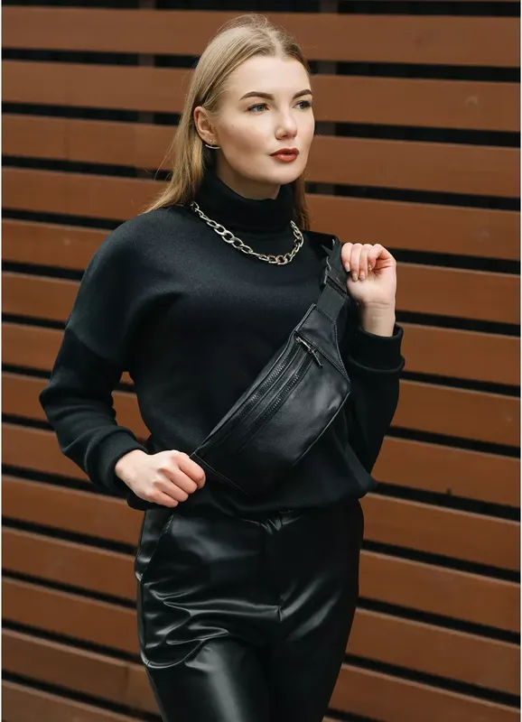Сумочка из натуральной кожи на пояс бананка Sambag - отличный вариант для людей, которые следят за модными тенденциями. Характеристики: Материал верха: натуральная кожа. Кожа водоотталкивающая, устойчивая к выцветанию, эластичная (не трескается при эксплуатации) и прочная на разрыв. Подкладка. Материал оксфорд средней плотности, прочный, устойчивый к царапинам, легко чистится, нитки из него не выбираются. Благодаря соединению всех частей подкладки между собой нагрузки на экокожу уменьшаются и распределяются равномерно. Это продлевает срок службы кожи и швов. Фурнитура. Металлическая молния. Бегунки с фиксатором: сумка не откроется самостоятельно от нагрузок, а только рукой. Основное отделение на молнии. Фастекс-застежка из прочного современного пластика. Шлейки. Плечевой ремень из текстиля, надежно пришитый на планку по спинке. Подсоединен к бокам кожаными треугольниками. Длина регулируется пластиковым регулятором. Функциональность. Снаружи спереди сумки карман на молнии. Внутри сумки отдельно одно отделение, которое разделено на несколько карманов. Снаружи на спинке сумки один карман на молнии. Стандартно поставляется на обхват по талии (через плечо) от 86 см до 123 см: регулируемый ремень. При заказе в комментарии указать необходимую длину ремня, если она отличается от стандартной. Размер: карманы бананки 22х12х4 см, а длина с "ушками" по бокам 30,5 см.