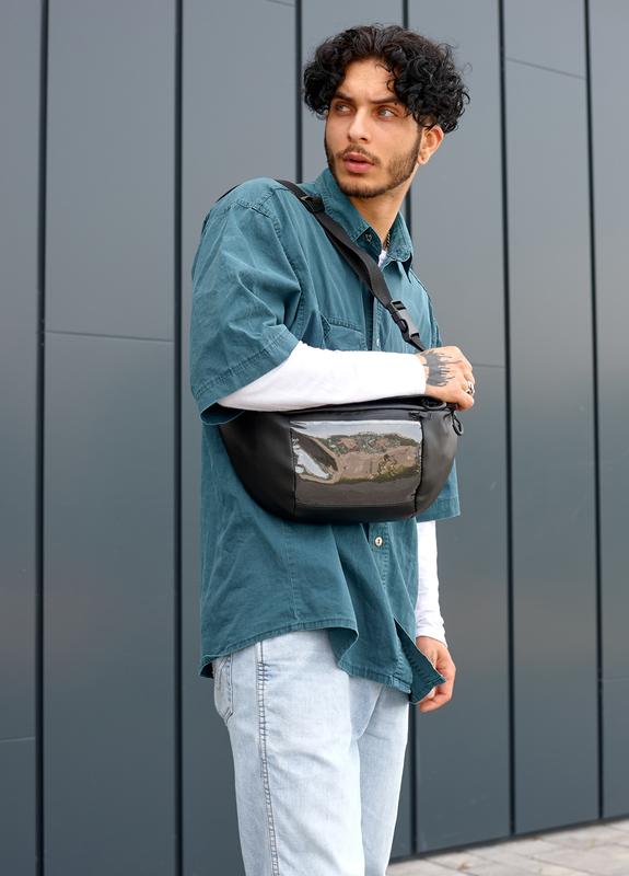 Поясная сумка бананка Sambag DynamicDart - скорость, движение и целеустремленность Сумка на 9 отделений сочетает в себе удобство, емкость и практичность. Характеристики: • Материал верха: новейшая экокожа повышенного уровня износостойкости (не менее 50 000 циклов по тесту Мертиндейла). Кожа водоотталкивающая, устойчивая к выцветанию, эластичная (не трескается при эксплуатации) и прочная на разрыв. • Подкладка: материал оксфорд средней плотности, прочный, устойчивый кцарапин, легко чистится, нитки не выползнут. Благодаря соединению всех частей подкладки между собой, нагрузка на экокожу уменьшается и распределятся равномерно. Это продлевает срок службы кожи и швов извне. • Фурнитура: молнии типа YKK из надежного пластика. Бегунки металлические с фиксатором: сумка не откроется самостоятельно от нагрузок, а только рукой. Основное отделение на молнии. Фастекс-застежки из прочного современного пластика известного производителя WT. • Шлейки. Плечевый ремень из текстиля надежно пришит к кожаным окончаниям. Длина регулируются с помощью фастекса и пластикового регулятора. • Функционалность: снаружи спереди сумки прозрачный карман. Внутри сумки, кроме основного отделения, есть два открытых кармана, один большой карман на молнии, в котором три открытых отделения. Снаружи на спинке сумки два открытых кармана, куда легко поместится телефон и другие мелочи. Стандартный обхват (сумка с ремнем) составляет от 86 см до 168 см (длина регулируется). При заказе в комментарии задайте необходимую длину ремня, если она отличается от стандартной. • Размер: 38*21 см, максимальная ширина верха 7 см, к низу заужается. Сумки доступны во всех цветах.