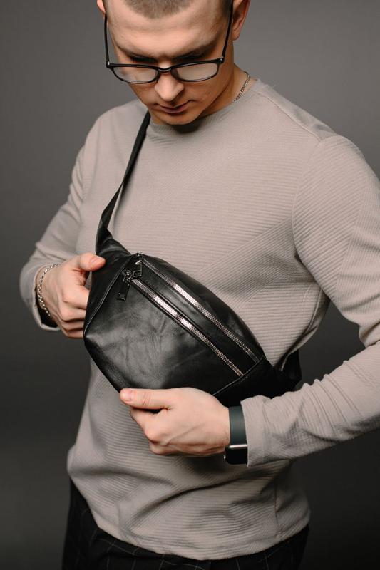 🟡Сумка-бананка на пояс из натуральной кожи (черная) • одно основное отделение на молнии • внешний карман на молнии с лицевой стороны • внешний карман на молнии с тыльной стороны ХАРАКТЕРИСТИКИ: - Материал: натуральная овечья кожа - Вид кожи: гладкая - Тип модели: бананка - Фурнитура: пластиковая - Фастекс: пластиковый - Максимальная длина ремешка: 100см - Размер: (В*Ш*Г) - 16см*36см*8см Отправка НП наложенным и по подписке 💵 Для заказа писать в чат 🤝