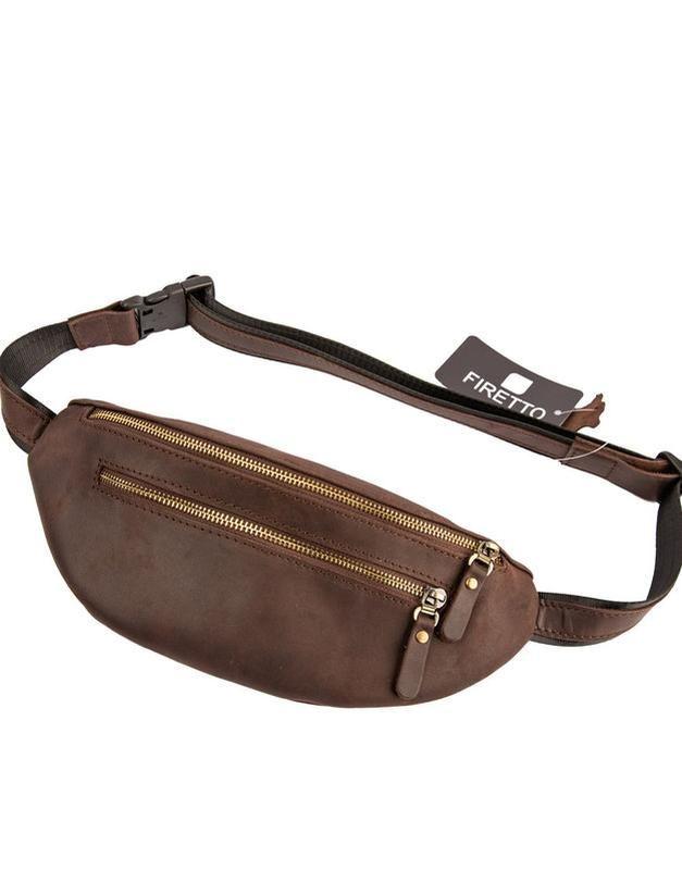 Бананка это не только спортивный аксессуар! Ведь сумка такая практичная, что её можно брать с собой на пробежку, так и на официальное мероприятие. Самое главное то, что она очень вместительная - поместиться и телефон, и личные вещи и даже косметика. И да, бананка подходит как мужчинам так и женщинам. Бананка из натуральной кожи от бренда "Firetto" компактная и вмещает все необходимые вещи, что действительно очень удобно! Выполнена с матовой кожи - "Крейзи". Внутри имеется одно отделение и накладной карман на молнии. Подкладка - тканная непромокаемая, материал подкладки - оксфорд. На передней внешней части сумки также есть небольшой, аккуратный кармашек на молнии. Края сумки обработаны, карманы отделаны кожей. Фурнитура - антик (металлическая). Упаковка - фирменный пакет/коробка.