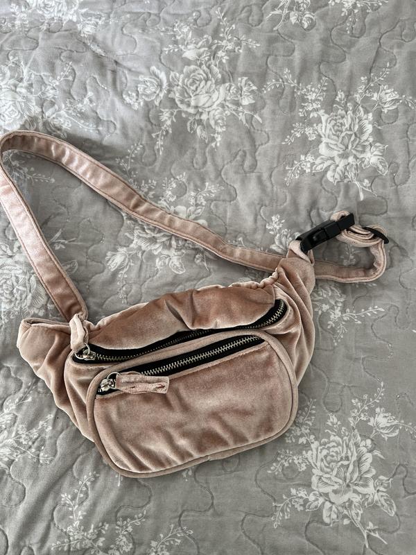 сумка-бананка Pull and Bear, велюровая, нежно розового цвета, состояние хорошее почти новое