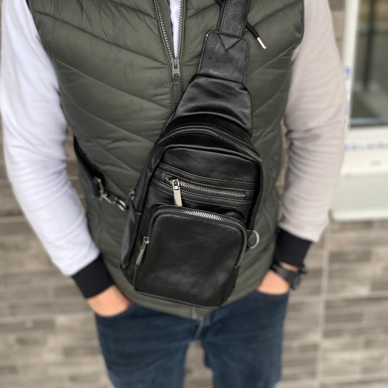 Мужская черная нагрудная сумка бананка слинг через плечо