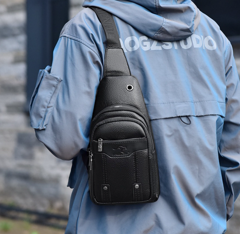 Мужская сумка нагрудная бананка мессенджер кенгуру, сумка-слинг на плечо на спину чёрный к...