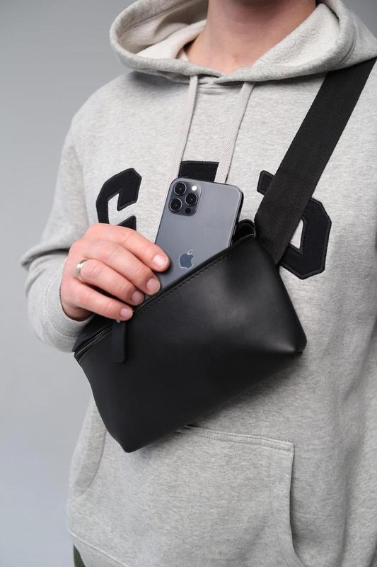 Бананка шкіряна чоловіча, сумка на пояс sl012 (чорна)