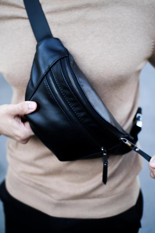 Модная мужская сумка-бананка на пояс из натуральной гладкой кожи skill (черная)