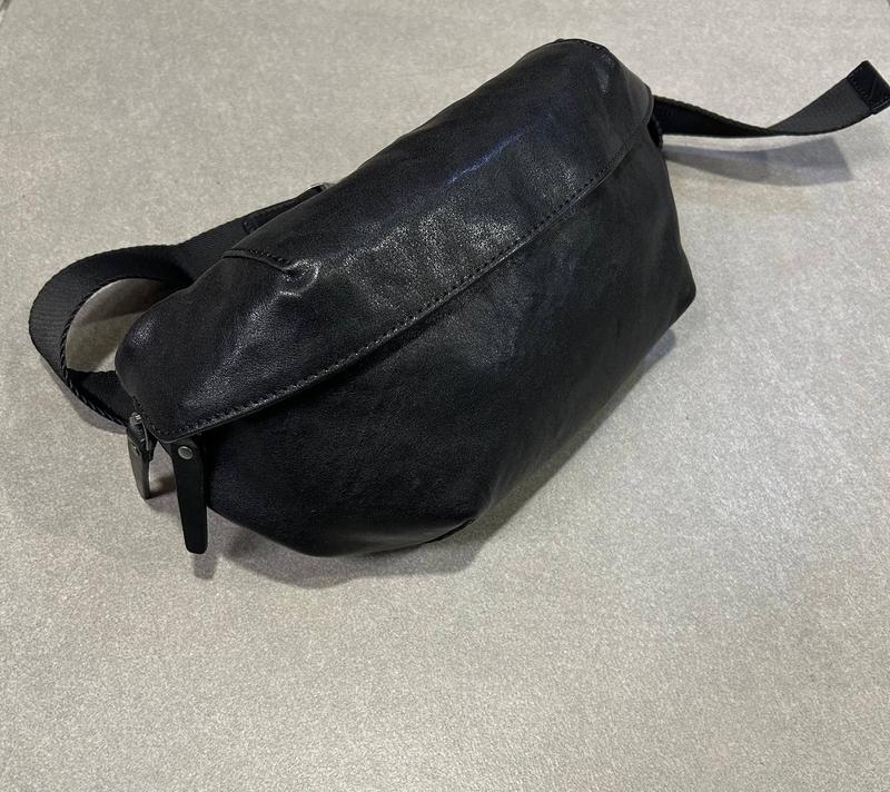 Стильна зручна чорна шкіряна сумка з натуральної шкіри. Містка, об’ємна, має металеву блискавку, міцний ремінь, надійну фурнітуру.
