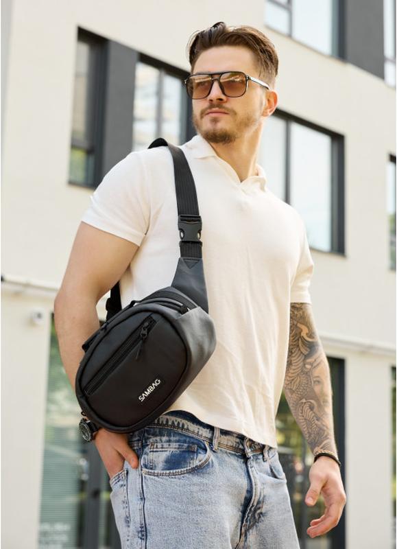 Бананка Sambag Flex чорного цвета Сумка от компании Sambag дает ощущение оригинальности и неповторимости в стиле. Бананка Flex подарит уверенность, подчеркнет ваш образ и индивидуальность. Характеристики классической черной сумки через плече Материал верха: новейшая экокожа повышенного уровня износостойкости (не менее 50 000 циклов по тесту Мертиндейла). Кожа водоотталкивающая, устойчивая к выцветанию, эластичная (не трескается при эксплуатации) и прочная на разрыв. Подкладка: материал оксфорд средней плотности, прочный, устойчивый к царапинам, легко чистится, нитки из него не выползают. Благодаря соединению всех частей подкладки между собой, нагрузка на экокожу уменьшается и распределятся равномерно. Это продлевает срок службы кожи и швов извне. Фурнитура: молнии типа YKK из надежного пластика. Бегунки металлические. Основное отделение на молнии. Фастекс-застежка из прочного современного пластика. Шлейки: плечевой ремень из текстиля надежно пришит на планку по спинке. Длина регулируется с помощью фастекса и пластикового регулятора. Отстегивается с двух сторон. Функциональность: снаружи спереди сумки один карман. Внутри сумки отдельное одно основное отделение, карман на молнии, открытый карман и карман из сетки. Дополнительно имеет карабин для ключей. Снаружи на спинке сумки один карман на молнии. Спинка - вентиляционная, выполнена из Air Mesh 3D. По умолчанию поставляется на обхват по талии (через плечо) от 86 см до 160 см: ремень регулируется. При заказе в комментарии задайте необходимую длину ремня, если она отличается от стандартной. Размер: 30*17*10 см.