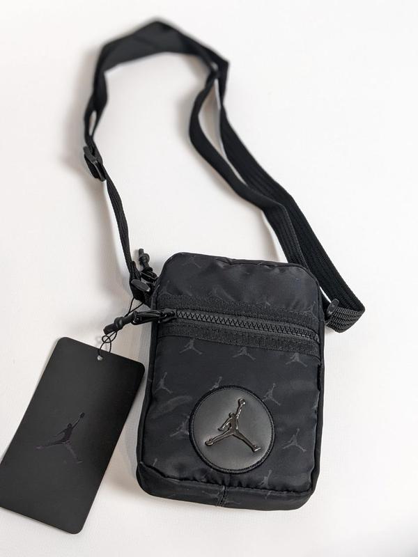 Месенджер Jordan 😻 ▫️Размер - 17.5 x 13 x 3.5 см ▫️Цвет: черный ▫️Состав: 100% poliester ▫️Одно основное отделение ▫️Фронтальный карман на молнии ▫️Наплечный ремень с регулятором длины ▫️Декорирована металлическим логотипом Идеальное место для вашего телефона 😎 ▪️ Цена: 600