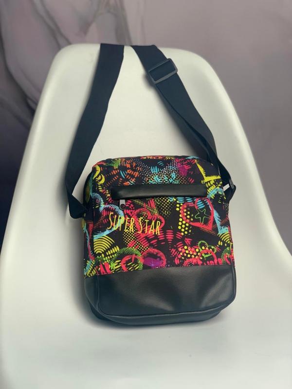 - размер 24х 22х 7 см; -материал: Kiten + искусственная кожа. -Фирменная фурнитура. -Три отделения: Спереди на молнии; Центральное отделение на молнии сверху; Сзади на молнии. -Ремень с возможностью регулировки по длине