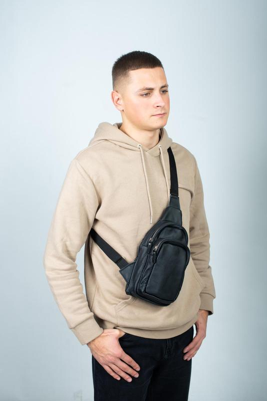 Мужской кожаный слинг Паспорт, водительские водительские водительские права, квитанции и сделки – все эти бумаги являются неотъемлемой частью жизни взрослого человека. Не разберечь и сохранить внешний вид поможет удобный и компактный аксессуар – мужская нагрудная сумка для документов. Описание: • Материал: натуральная кожа • 2 передних кармана на молнии и один сзади • Прочная габардиновая подкладка • Качественная пластиковая молния • Регулируемый ремешок • Размер: 27*14*10 см