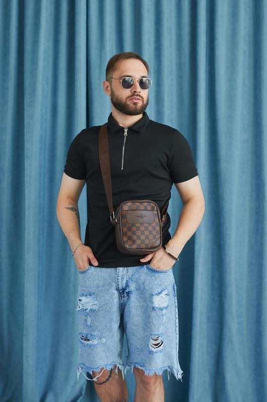 Месенджер шкіряний louis vuitton коричнева з чорним клітка