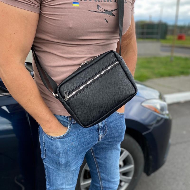 Мужская черная сумка борсетка мессенджер через плечо