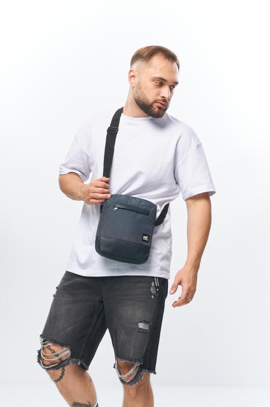 Розміри барсетки 24*22 см; - сумка складається з одного відділення на змійці-блискавці, має дві зовнішні кишені, одна з яких (на лицьовій стороні сумки), також на блискавці; - матеріал барсетки: Поліестер 600д; - Логотип-пришивний; - матеріал дна: штучна шкіра; - регульована довжина ремінця; - фірмова фурнітура.
