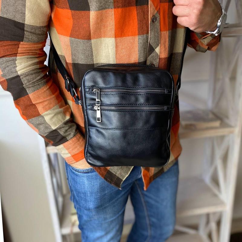 Сумка Детройт из 100% натуральной, гладкой кожи Очень удобна за счет среднего размера и 6 отделений Одна из самых популярных моделей среди всего ассортимента ⠀ Производство Украина Очень практичная для повседневного использования Лаконичный дизайн без эмблем и логотипов ▪️Размер: 22*18*8 ▪️Цвет: черный ▪️Материал: 100% натуральная кожа ▪️Полностью металлическая фурнитура ▪️2 основных отделения ▪️2 карманы на фасаде ▪️Внутри плотная подкладка без скольжения + карман на молнии ▪️Карман на молнии позади ▪️Регулировка длины ремня, максимум 130 см ⠀ Надежная и практичная модель ⠀