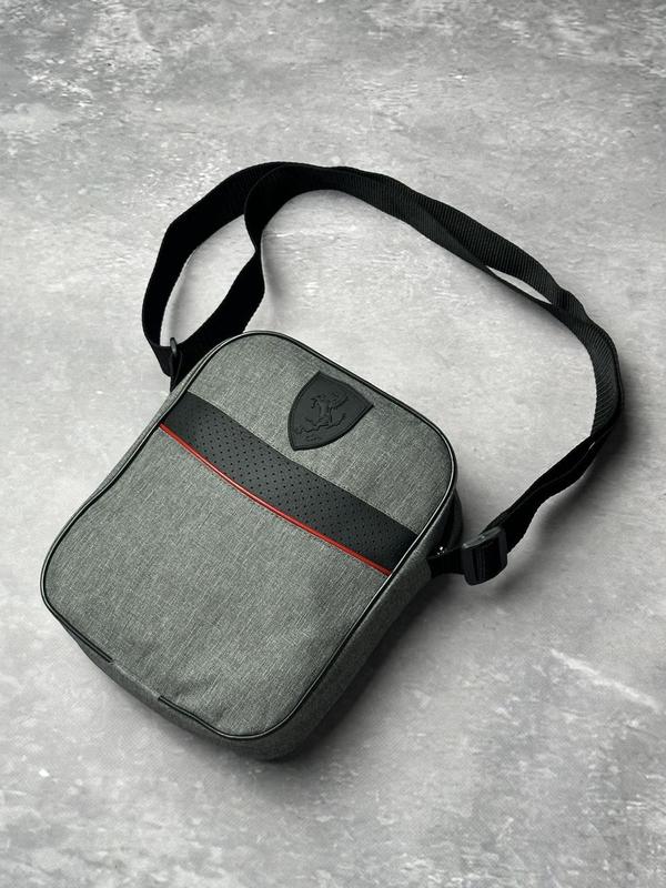 Барсетка мужская, серая ferrari, сумка через плечо ферари