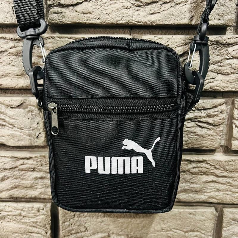 Барсетка черная small Puma белый логотип: - Размер: 18* 13 см; - Материал: Оксфорд 1000 D - синтетический материал обладающий водоотталкивающей пропиткой; - Логотип: накатка белая Puma; - Регулируемый съемный ремень, качественная фурнитура; - Основной карман на молнии, внутри дополнительный подкладочный карман (без змейки); - Дополнительный карман на тыльной стороне барсетки ; - Дополнительный передний карман на молнии. Логотип- накатка; - Обратная сторона барсетки имеет дополнительный поролоновый уплотнитель что позволяет изделию хорошо держать форму. Барсетка подходит для повседневного городского стиля, а так же под спортивный стиль. Освободит руки и карманы, а так же дополнит Ваш стильный образ.