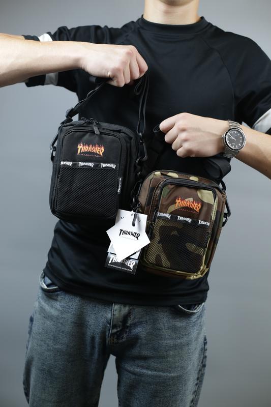 Сумка Thrasher Характеристики: - Цвет: черный, камуфляж - Размер: 17×14×8 см - Фурнитура YKK - Одно основное отделение на замке с двумя бегунками и внутренним карманом-сеткой - Выпуклый передний карман на замке с внутренней лентой с карабином - Передний карман сетка - Съемный регулируемый ремешок с карабином: максимальная длина 129 см, минимальная длина 68 см, ширина 2,5 см Отпрашиваю шкаф доставкой или по вашим данным, если остались вопросы пишите в частные уведомления) Также в профиле есть много различных сумок/рюкзаков/барсеток