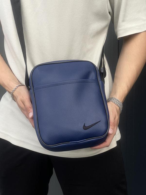 Мессенджер nike синя, мессенджер найк, брендовая барсетка, барсетка кожаная, барсетка на п...