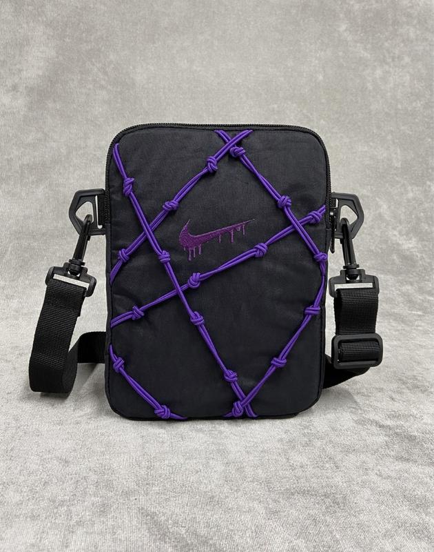 Сумка виготовлена з міцної водовідштовхувальної ткананини • Матеріал : Оксфорд 420D.SW.PVC • Розмір Висота : 23 см Ширина : 18 см • Відділення -Зовнішні: одне основне відділення та одна додаткова на фронтальній частині сумки • Фурнітура -Основна кишеня та додаткова на фронтальній частині сумки із реверсною спіральною блискавкою з металевим бігунком -Пластикова фурнітура • Деталі -Вишите лого на фронтальній частині сумки З вʼязаними резинками в хаотичному розміщенні прикріплені дуже добре тому можна не переживати що можуть відірватися -Довжина ременя регулюється від 70 до 130 см Ширина ременя 2,5 см