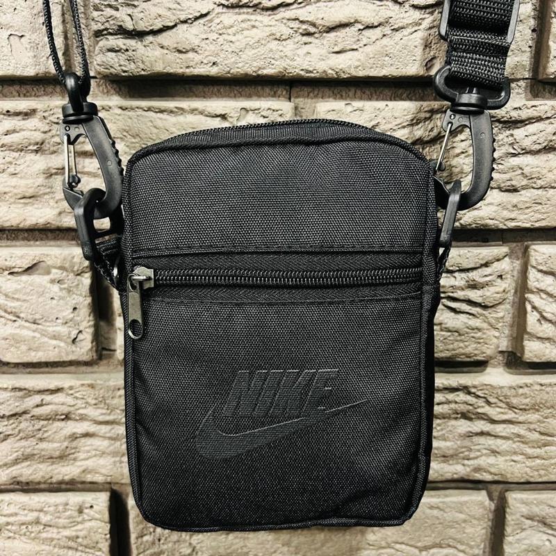 Борсетка черная small Nike черный логотип: - Размер: 18*13 см; - Материал: Оксфорд 1000 D - синтетический материал, обладающий водоотталкивающей пропиткой; - Логотип: накатка черная Nike; - регулируемый съемный ремень, качественная фурнитура; - Основной карман на молнии, внутри дополнительный подкладочный карман (без молнии); - Дополнительный карман на тыльной стороне борсетки; - Дополнительный передний карман на молнии. Логотип-накатка; - Изнанка борсетки имеет дополнительный поролоновый уплотнитель, позволяющий изделию хорошо держать форму. Борсетка подходит для повседневного городского стиля, а также под спортивный стиль. Освободит руки и карманы, а также дополнит Ваш стильный образ.