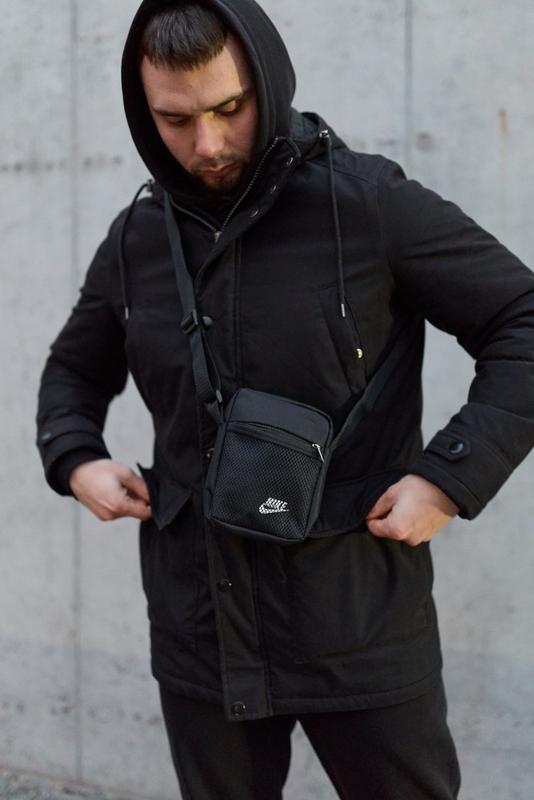 Борсетка черная мини Nike белый логотип: - Размер: 16*14 см; - Материал: Оксфорд 600d - синтетический материал, обладающий водоотталкивающей пропиткой; - Логотип: наката белая Nike; - регулируемый не съемный ремень, качественная фурнитура; - Основной карман на молнии, внутри дополнительный подкладочный карман (без молнии); - дополнительный карман на тыльной стороне борсетки на липучке; - Дополнительный передний карман-сетка фиксируется с помощью качественной резинки, под ней выполнен декоративный логотип-накатка; - Изнанка борсетки имеет дополнительный поролоновый уплотнитель, позволяющий изделию хорошо держать форму. Борсетка подходит для повседневного городского стиля, а также под спортивный стиль. Освободит руки и карманы, а также дополнит Ваш стильный образ.