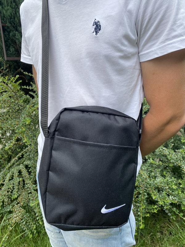 Барсетка 600д Nike Розмір: 24 х 20 х 7 см; - матеріал: Поліестер 600д; - регульована довжина ремінця; - фірмова фурнітура; - У барсетці є одне велике відділення на змійці зверху; - на задній стороні барсетки є кишеня на змійці; - Спереду кишеня без змійки.