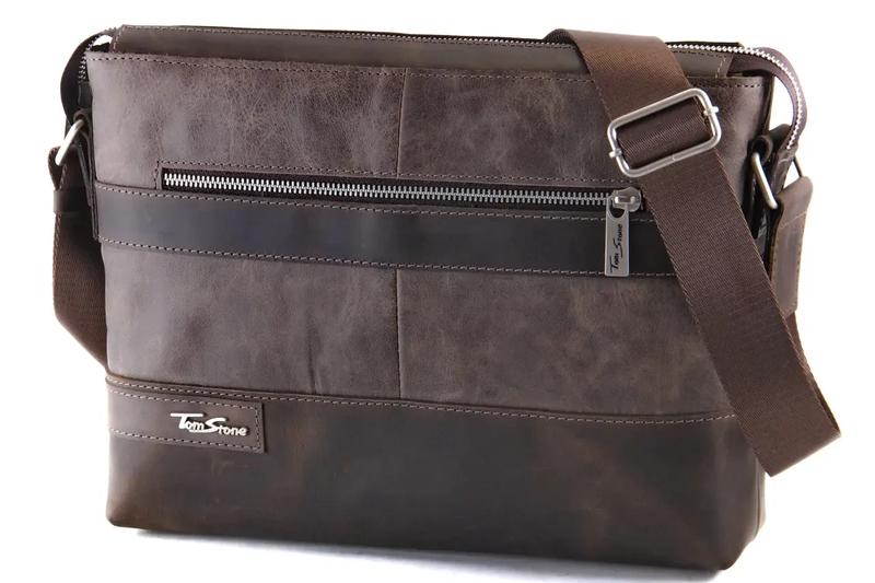 Сумка мессенджер формата а4 tom stone 517 кожаная коричневый