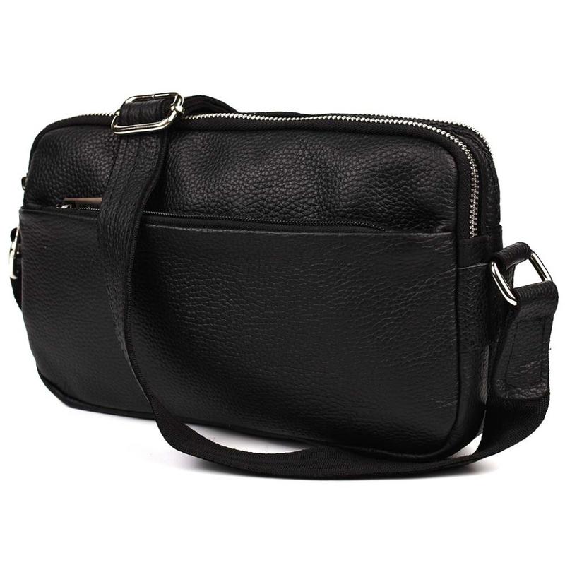 Сумка шкіряна через плече на два відділення FA-0745-4lx TARWA чорний флотар. Стильний месенджер на кожен день, у поїздці та на прогулянці.