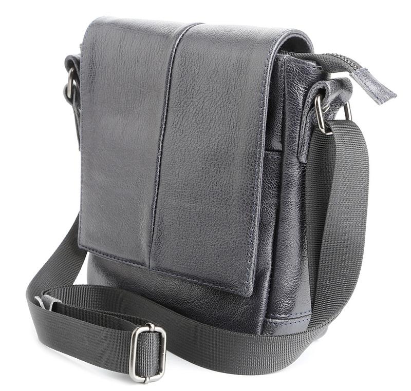 Материал: натуральная кожа высокого качества; Цвет: темно-синий (ближе к черному); Размеры (ШхВхГ, см): 18х18х6; Страна производитель: Украина. Высококачественная мужская кожаная сумка. Аксессуар можно носить через плечо при помощи регулируемого, текстильного плечевого ремня черного цвета. Изделие закрывается при помощи кожаного клапана на двух скрытых магнитах и молнией. Под клапаном расположен накладной карман. На задней внешней стороне находится отделение на молнии. Цвет фурнитуры: темное серебро. Кожаная сумка станет превосходным подарком мужчине к любому празднику. Внутри: - одно основное отделение; - кожаный накладной карманчик для мобильного телефона (на передней стенке); - потайной карман на молнии (на задней стенке).