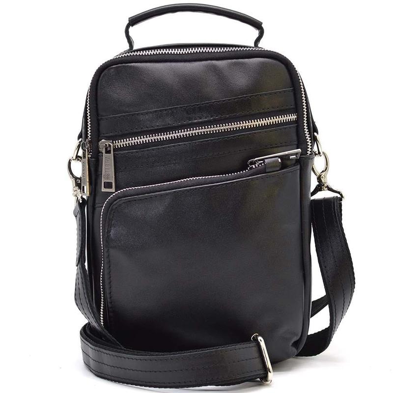 Сумка через плечо в кожаной ручкой TARWA GA-0120-4lx . Кожа - телячья, наппа, цвет - черный. Размер 28*20*8см.