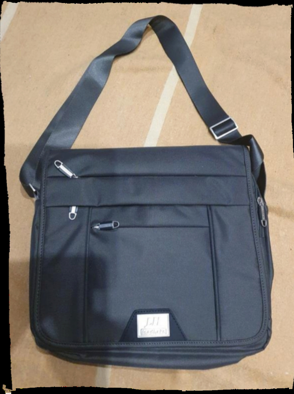 мужская сумка с длинным ремнем через плечо. С водонепроницаемой ткани на 3 отделения. Застежка на молнии и множество дополнительных карманов. Размер 30 на 38. Хорошего качества!