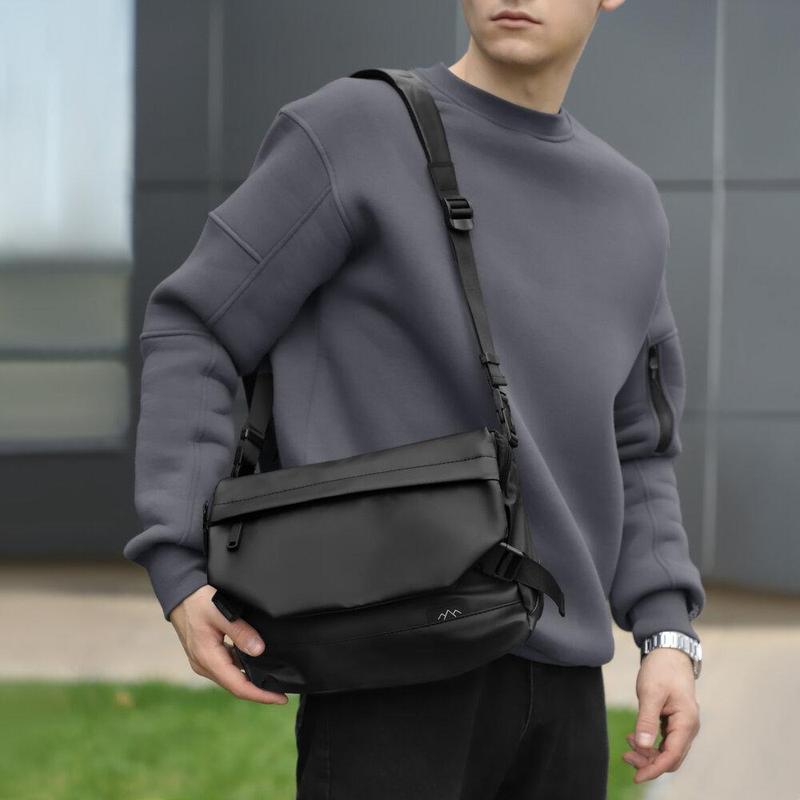 Сумка Pobedov Modest – стильный аксессуар для повседневного использования, сочетающий функциональность и лаконичный дизайн. Материал: прочный водоотталкивающий PU, устойчивый к царапинам. Подкладка: полиэстер. Размеры: 32 × 3 × 22 см Сумка имеет надежную застежку на молнию с двумя бегунками, а также фиксируется дополнительными фастексами для безопасности. Спереди расположены два удобных кармана на молнии, а внутри предусмотрено два основных отдела и четыре небольших кармашка для мелочей. Для ключей предусмотрено специальное крепление. На задней части - еще один карман с прорезиненной молнией, защищающий вещи от влаги. Ремень легко регулируется благодаря пряжкам и надежно застегивается фастексом.
